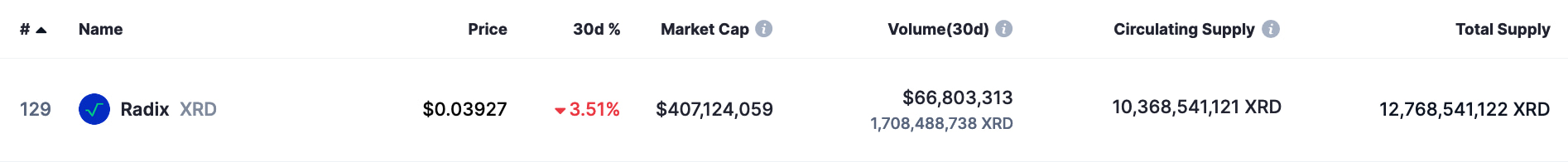 Radix Coin Market Cap
